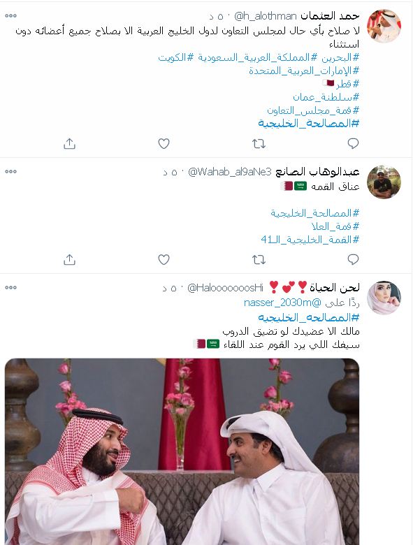 تفاعل نشطاء مواقع التواصل الإجتماعي في الأردن والوطن العربي، مع المصالحة الخليجية التي ستتم اليوم على هامش القمة الخليجية الـ 41 في السعودية.