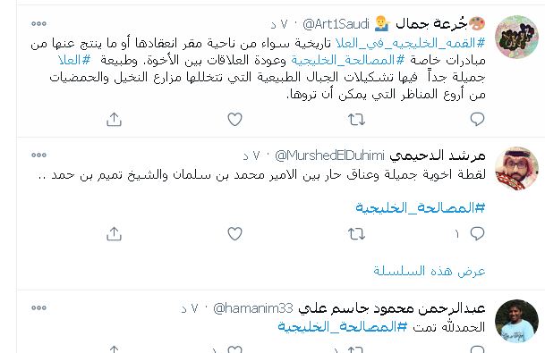 وتصدر وسم المصالحة الخليجية قائمة الترند على موقع تويتر، عبر خلاله النشطاء عن تاييدهم لهذه الخطوة في رأب الصدع بالبيت الخليجي وانهاء الخلافات.