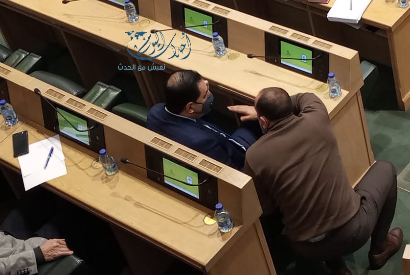 عدسة "أحداث اليوم" رصدت "وشوشة" وحديث بالسر، بين النائبين عمر العياصرة الذي "قرمز" بجانب زميله ينال فريحات، بعد تحويل سؤاله إلى استجواب، فهم من "الوشوشة" أنه مبكر يا ينال تحويل الأسئلة لإستجوابات".
