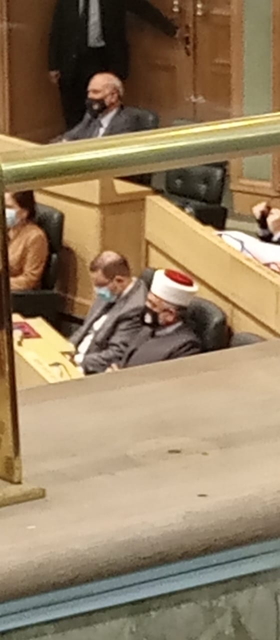 ومع تأثر المملكة في المنخفض القطبي، ارتدى خمس نواب الشماغات والعقال، فيما ارتدى وزير الاشغال العامة والاسكان، يحيى الكسبي، الذي بدا عليه التعب خلال الجلسة، ووزير الاستثمار والعمل معن قطامين اكتفى بوضعه على كتفيه.
