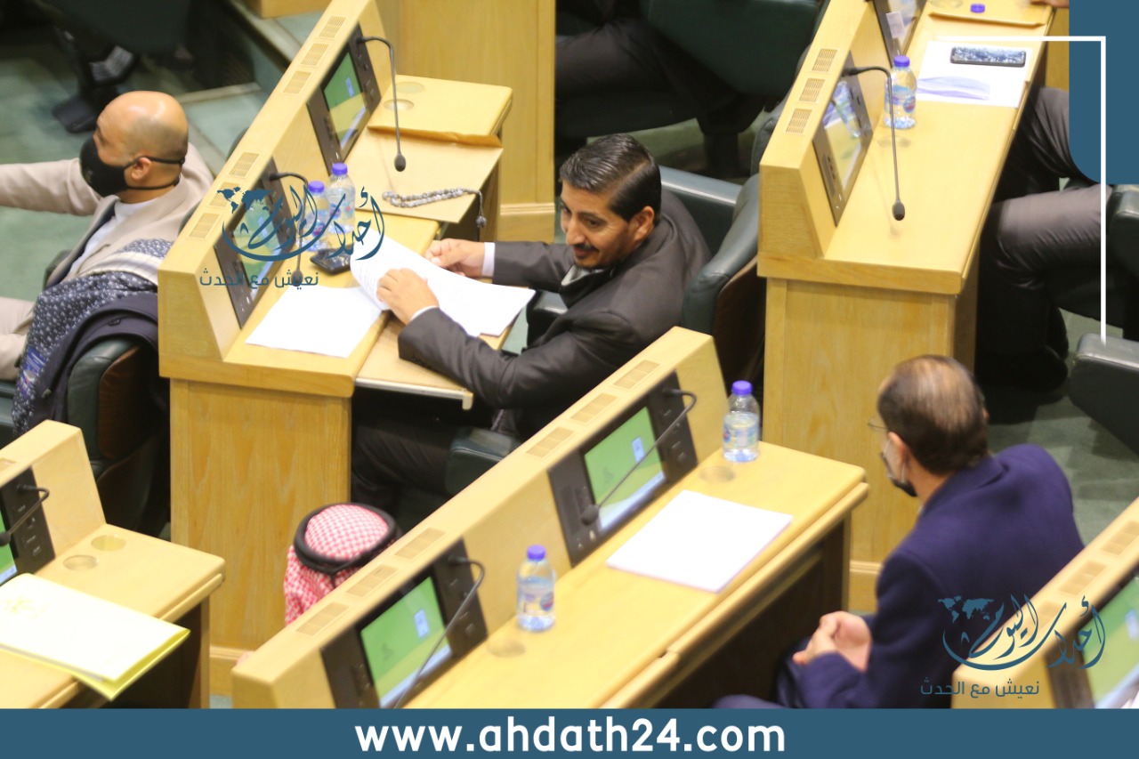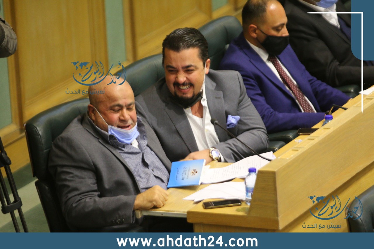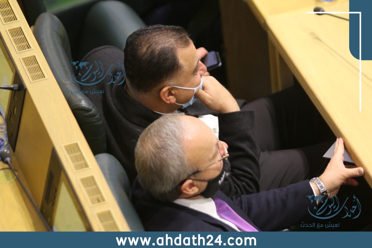 النائب صالح العرموطي شوهد خلال الجلسة يشرح للنائب أحمد القطاونة العديد من النقاط، حسب ما فهمته كواليس "أحداث اليوم".