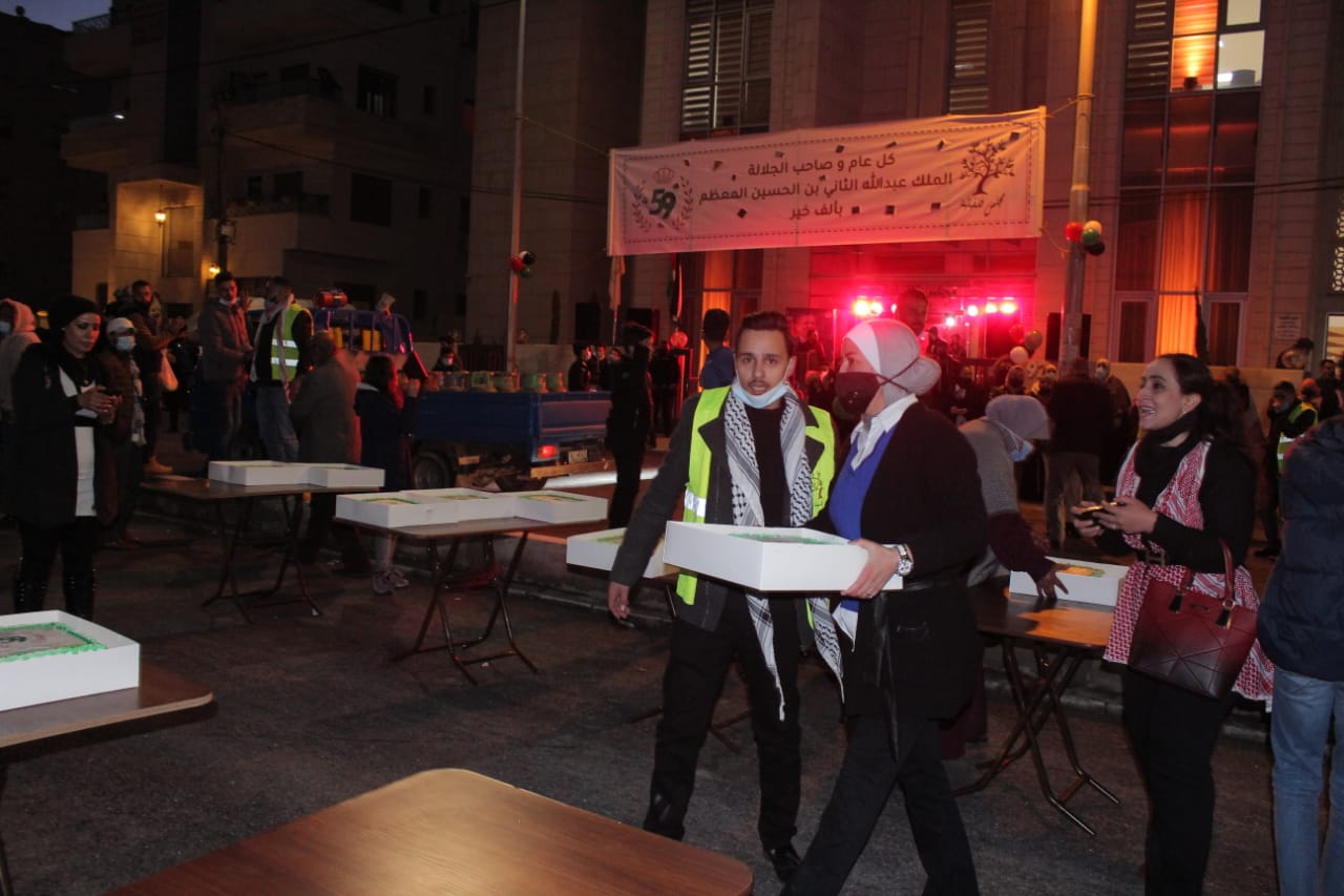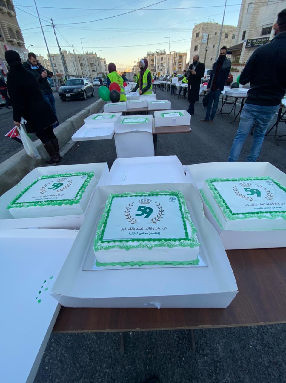 أحداث اليوم - اقام مجلس قلقيلية السبت احتفالًا بمناسبة عيد ميلاد الملك عبدالله الثاني التاسع والخمسين، حيث نُظمت الفعالية في الساحة الأمامية للمجلس وتخلل الإحتفال عرضًا غنائيًا وقد أقام فريق شباب مجلس قلقيلية فقرات فنية من الزجل الشعبي والدبكة بمشاركة فرقة أمانة عمان الشعبية، وتم توزيع 500 قالب كيك على المنازل والسيارات بهذه المناسبة.