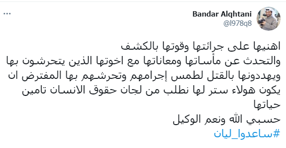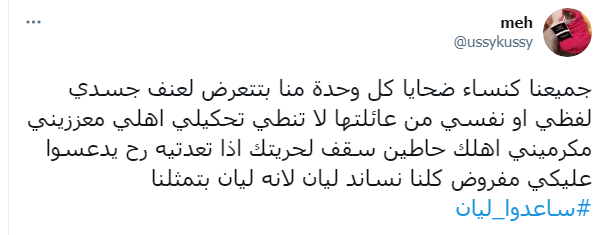 ودشن النشطاء وسم #ساعدوا_ليان على مواقع التواصل قالوا من خلاله إنه يجب مساعدة ليان وكل الفتيات النعنفات من الظلم الواقع عليهن.