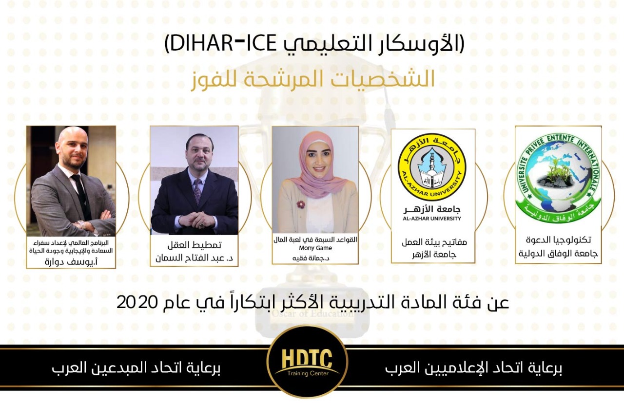 انطلاقًا من كونِ الإبداعِ العلمي والتعليمي والمهاري لا يقلُّ أهميةً عن الإبداعِ الفني الذي يأخذ عادةً حُصة الأسد في جوائزِ الأوسكار المعتمدة، ولأنَّ ناشرِي المعرفةِ من جامعاتٍ ومراكز تدريبية وتعليمية وأفرادٍ مجتهدين يستحقونَ التكريمَ كما الفنانينَ والممثلين، أطلقَ مركز تنمية الموارد البشرية في دبي HDTCجائزة دبي العالمية للموارد البشرية (الأوسكار التعليميDIHAR-ICE) والتي من شأنها أن تُكرمَ من أبدعوا في عام 2020، وذلكَ برعايةِ كُلٍّ من اتحادَيِّ المبدعينِ والإعلاميين العرب.