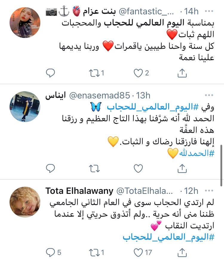 وعبر عدد كبير من الناشطات في الأردن والعالم عن مدى اعتزازهن بهذا اليوم، مبديات تحيتهن للفتيات الملتزمات رغم الإنفتاح وتداخل الثقافات التي نواجهها في الوقت الحالي.