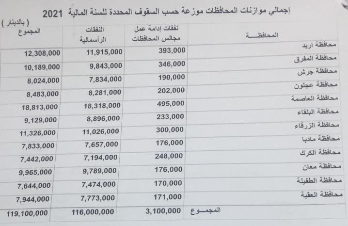 أحداث اليوم - ناقشت اللجنة المالية النيابية باجتماعاتها مع مجالس المحافظات موازنة المحافظات. وتزعت الموازنات حسب السقوف المحددة للسنة المالية 2021 كتالي:
