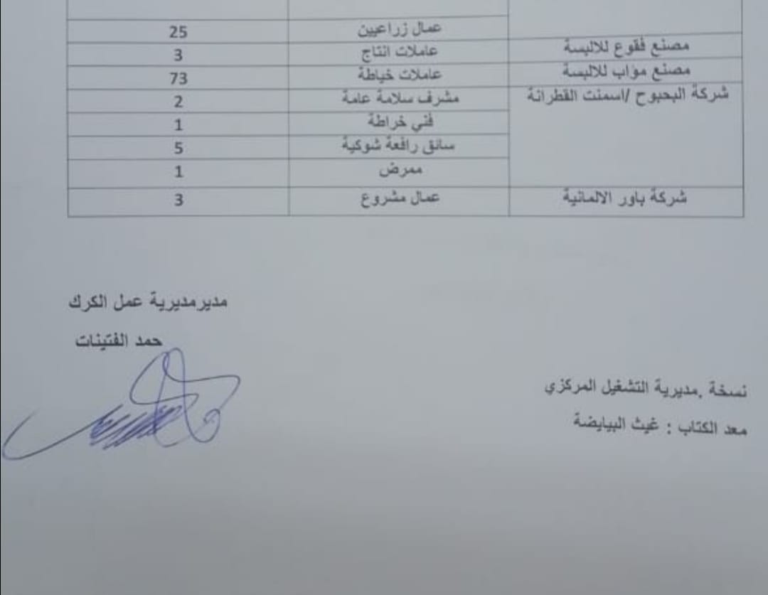 أحداث اليوم - أكد مدير مديرية العمل في محافظة الكرك حمد الفتينات أنه يتوفر لدى المديرية حالياً 110 فرص عمل في القطاع الخاص.