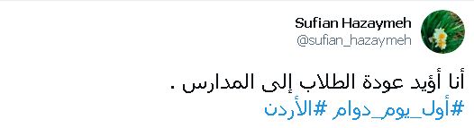 أحداث اليوم - ياسر شطناوي - تفاعل نشطاء مواقع التواصل الإجتماعي مع عودة الطلبة للمدارس التي بدأت اليوم الأحد، في كل المدارس الخاصة والحكومية لطلبة الصفوف الثلاثة الاولى وطلبة الثاني ثانوي.