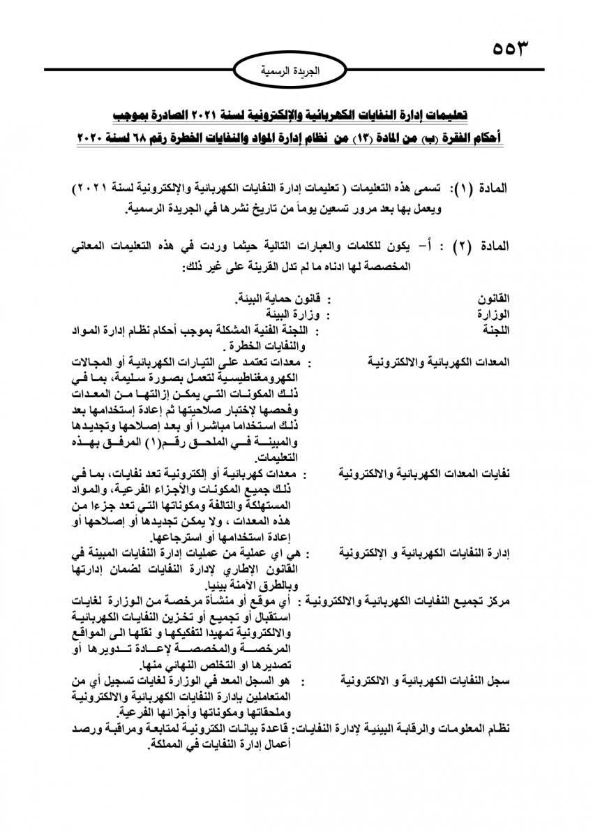 أحداث اليوم - أصدر وزير البيئة نبيل مصاروة الثلاثاء، تعليمات إدارة النفايات الكهربائية والإلكترونية لسنة 2021، ويعمل بها بعد مرور 90 يوماً من تاريخ نشرها في الجريدة الرسمية.وتالياً نص التعليمات: