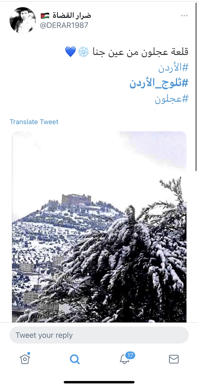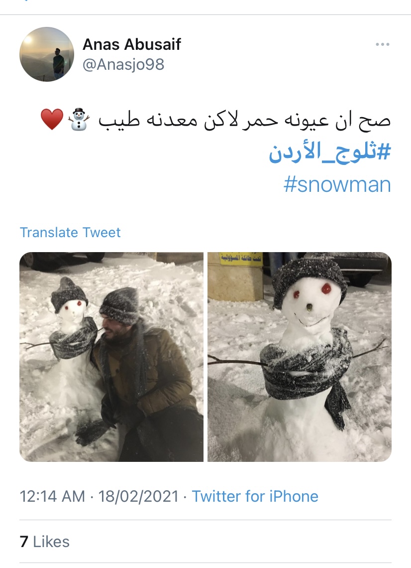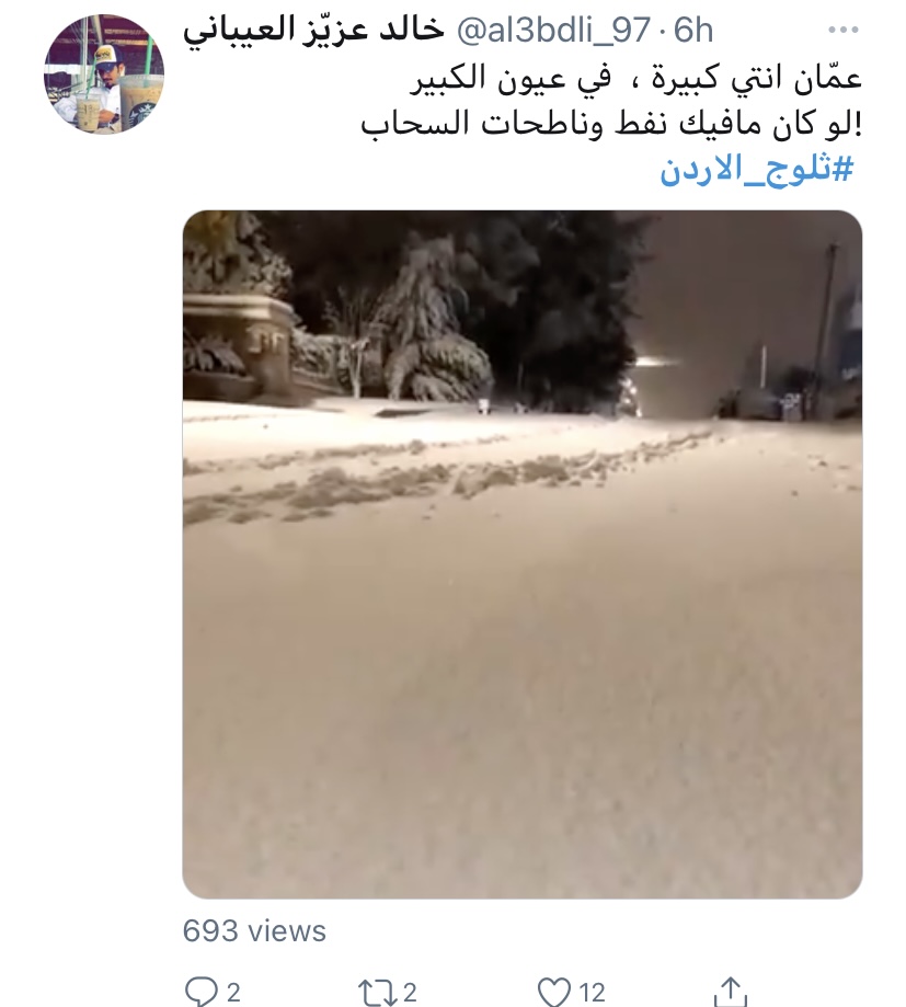 فرح غيث - تفاعل الأردنيون مع وسم #ثلوج_الأردن بعد ما حلّ الزائر الابيض على اغلب مناطق المملكة.