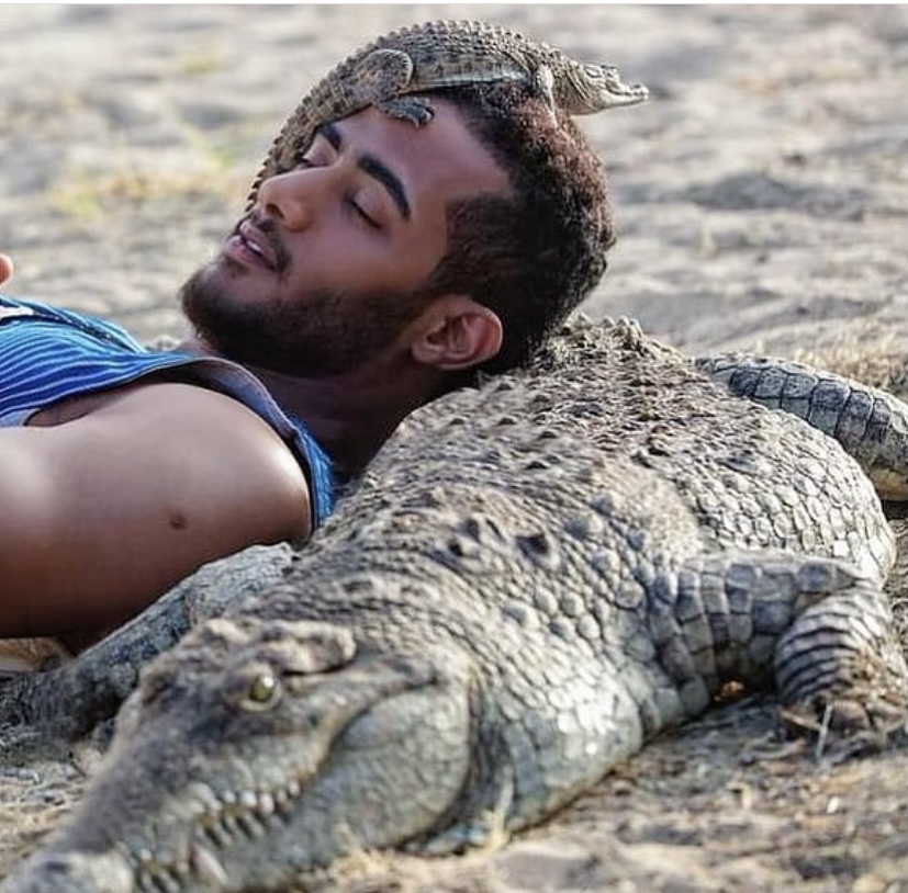 وأظهرت الصورة ايضا تمساح صغير موجود على رأس محمد رمضان، الأمر الذي اثار ايضا جدلا كبيرا بين المتابعين.