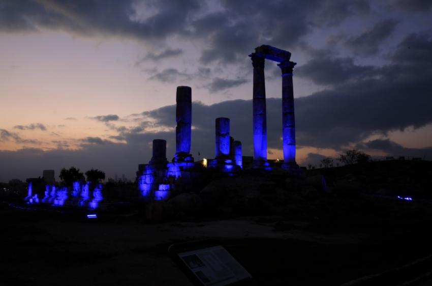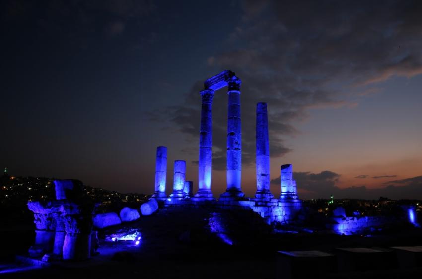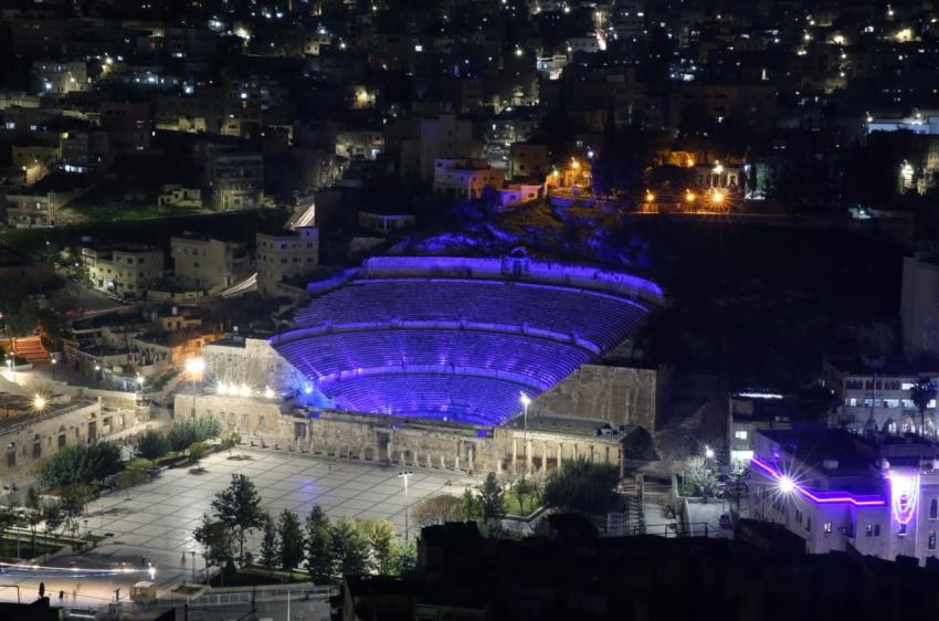 أحداث اليوم - قامت أمانة عمان الاثنين، باضاءة مباني ومعالم تاريخية في مدينة عمان باللون الأزرق.