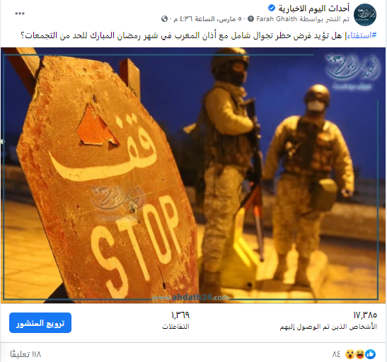 وقال نشطاء على استفتاء طرحته "أحداث اليوم" عبر موقعها الرسمي في موقع التواصل الاجتماعي فيسبوك إنهم يؤيدون فرض حظر شامل في شهر ومضان نظراً لارتفاع اصابات كورونا خلال الاسابيع القليلة الماضية.