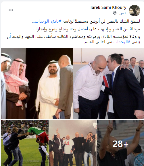 وكتب خوري عبر صفحته الخاصة على فيسبوك اليوم الإثنين: "لقطع الشك باليقين لن أترشح مستقبلاً لرئاسة نادي الوحدات".