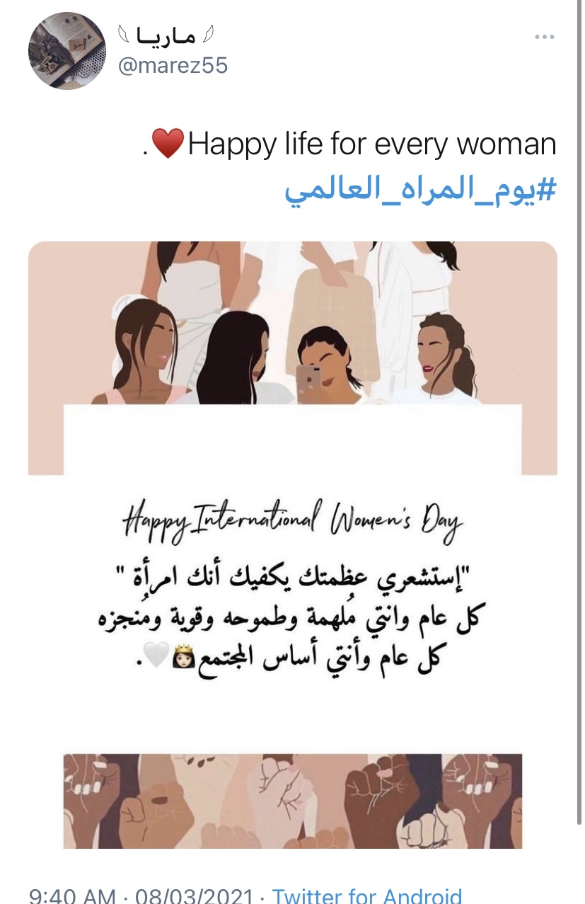 أحداث اليوم - فرح غيث - تفاعل رواد مواقع التواصل الاجتماعي في جميع انحاء العالم من خلال هاشتاق #يوم_المرأة العالمي بمناسبة يوم المرأة العالمي الذي يحدث في اليوم الثامن من شهر مارس / آذار من كل عام، ويقام للدلالة على الاحترام العام، وتقدير وحب المرأة لإنجازاتها الاقتصادية، والسياسية والاجتماعية.