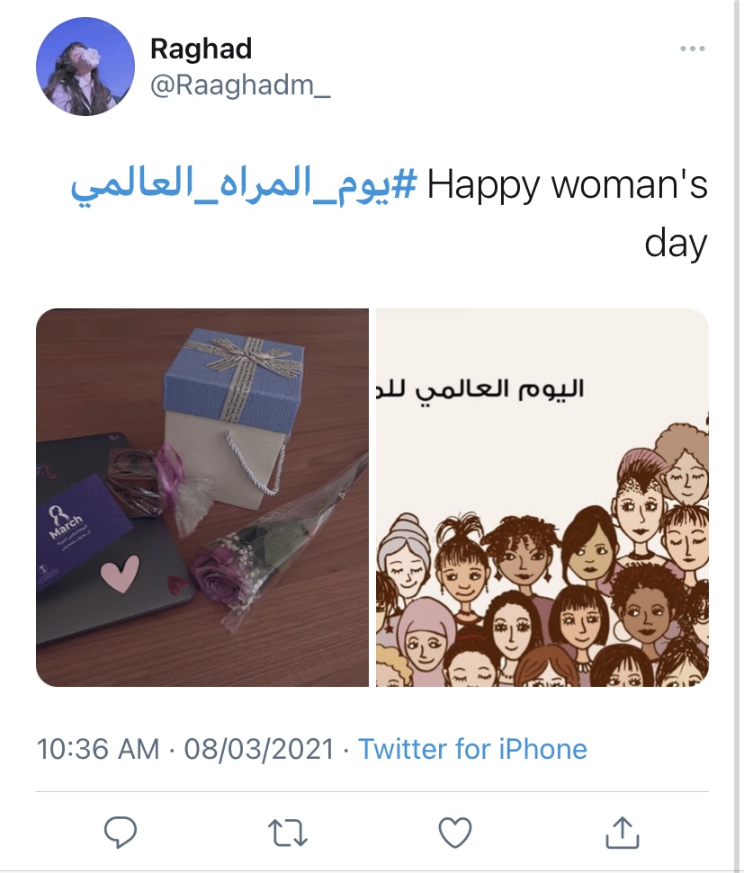 ونشرت بعض الفتيات صوراً لهدايا تلقوها من المؤسسات العاملين بها واخريات من عائلاتهم احتفالاً بهذا اليوم.