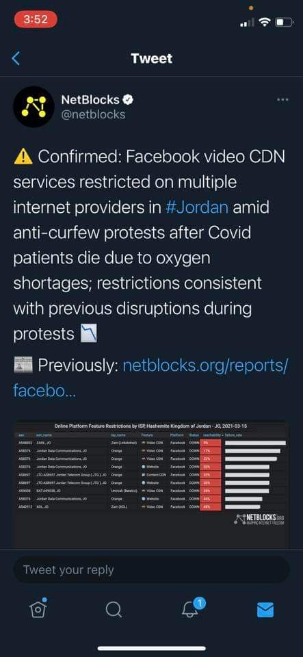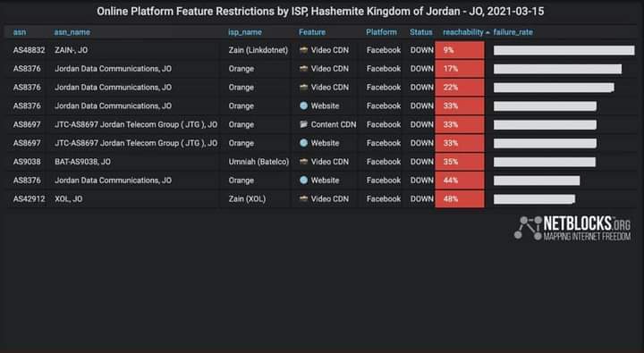 أحداث اليوم - أعلنت مؤسسة Netblocks الدولية المتخصصة بتتبع حالة الإنترنت حول العالم انقطاع الانترنت "بشكل ممنهج" في عدة مناطق أردنية.