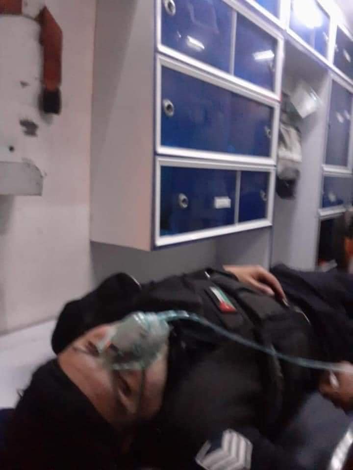 رجل امن يتلقى العلاج بعد تعرضه للاصابة