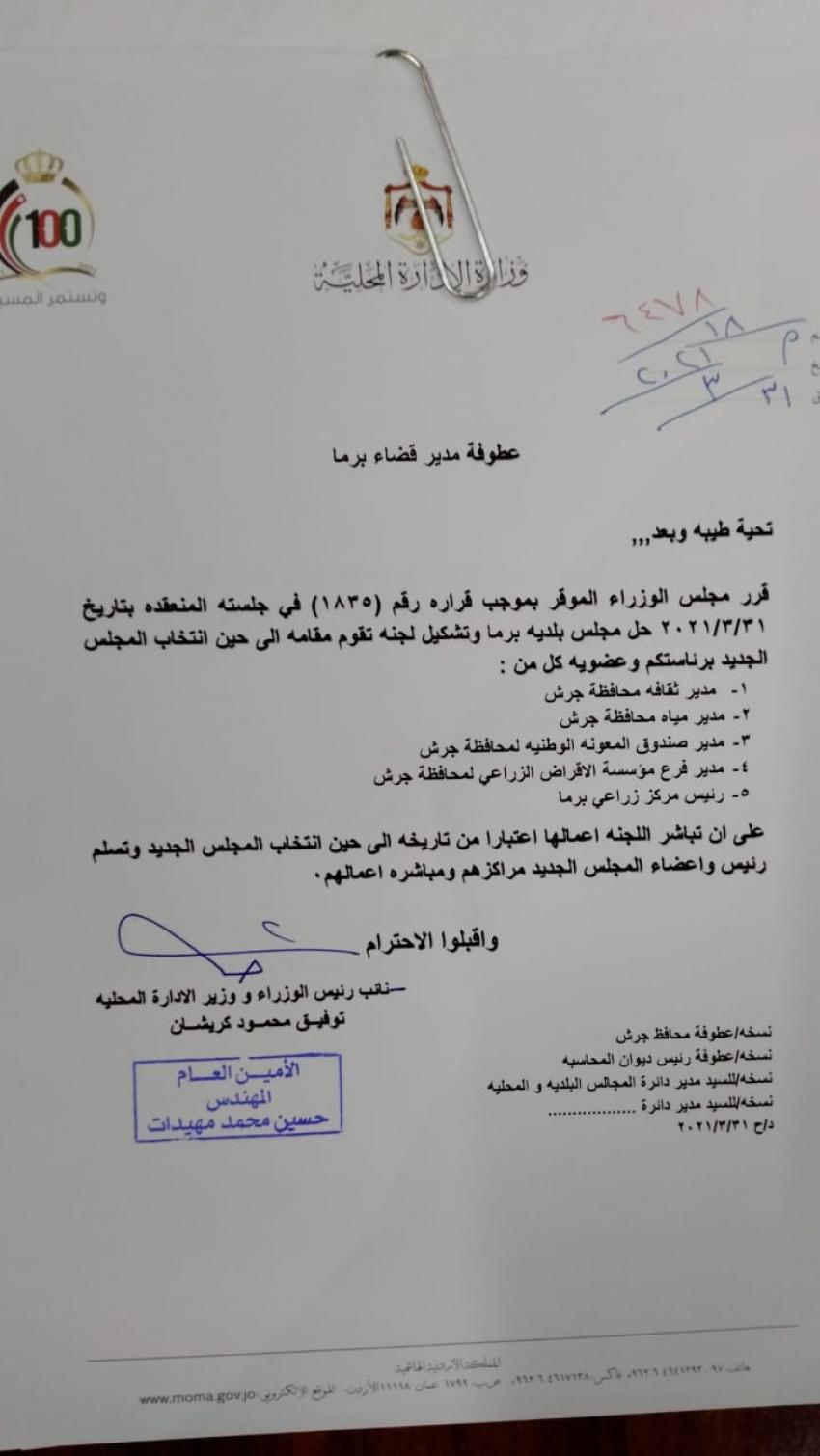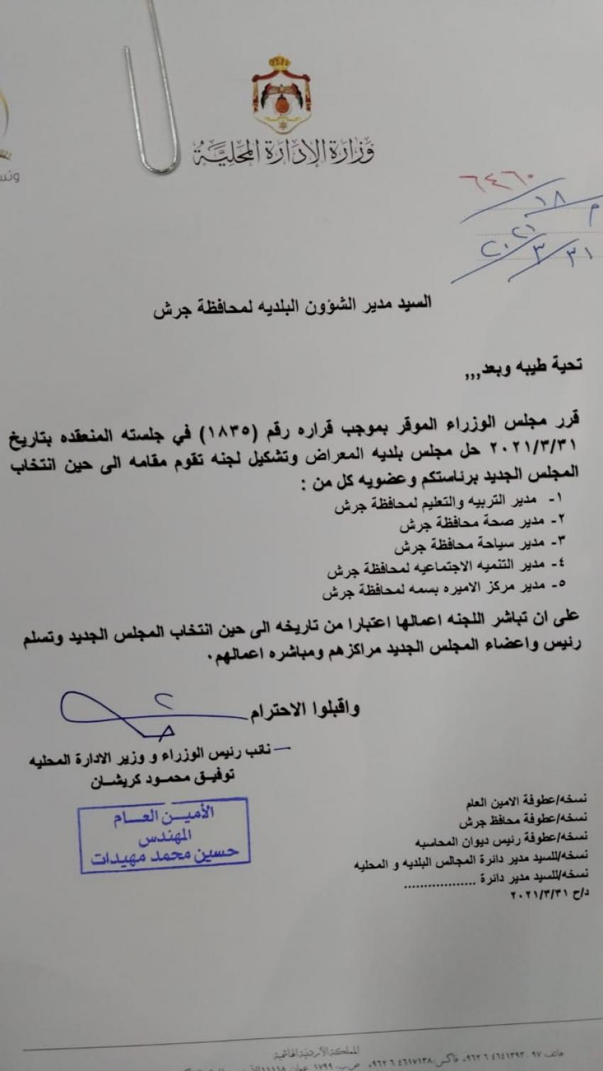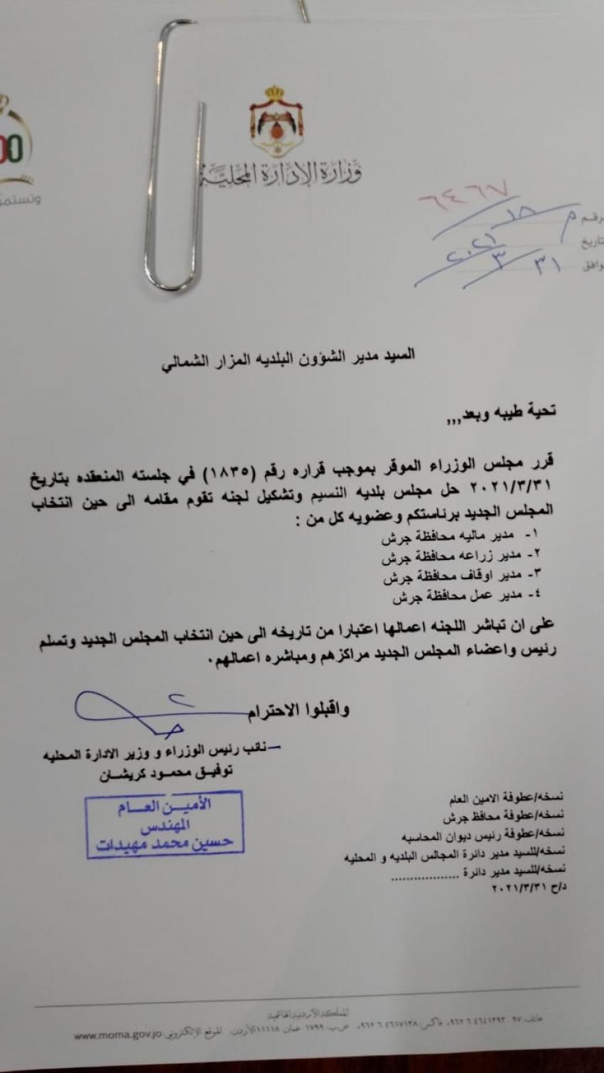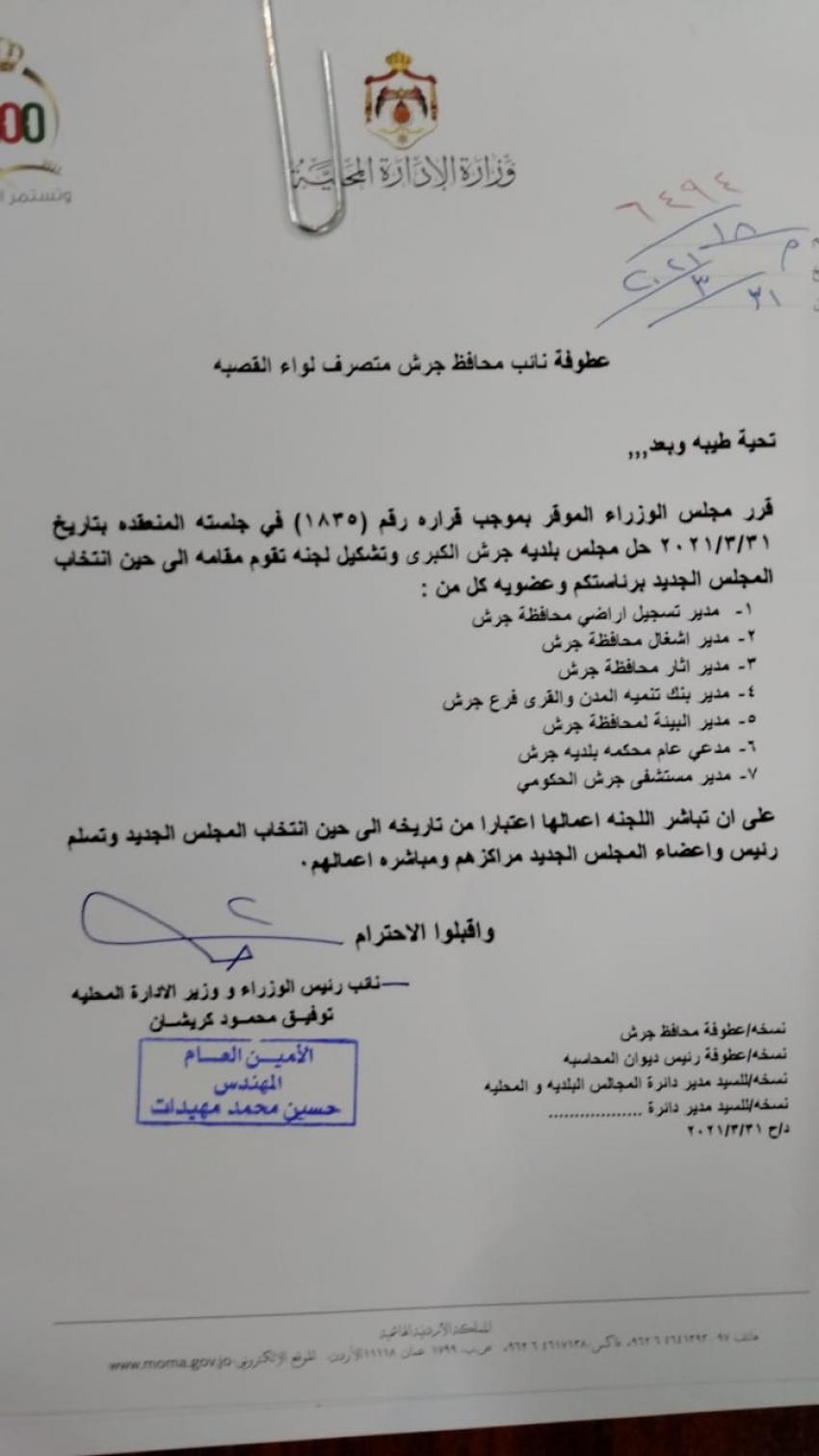 أحداث اليوم - قررت وزارة الادارة المحلية الأربعاء، تكليف لجان مؤقتة لادارة بلديات في محافظة جرش، وإربد.وتالياً الأسماء: