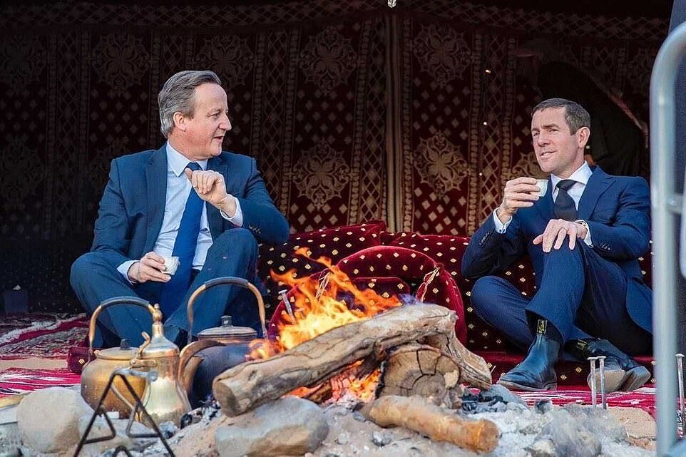 ويأتي ذلك بعد يوم واحد من نشر صحيفة "وول ستريت جورنال" صورة يظهر فيها كاميرون ورجل الأعمال الأسترالي ليكس غرينسال، وهما يشربان الشاي حول النار خلال اجتماع مع بن سلمان في الرياض.