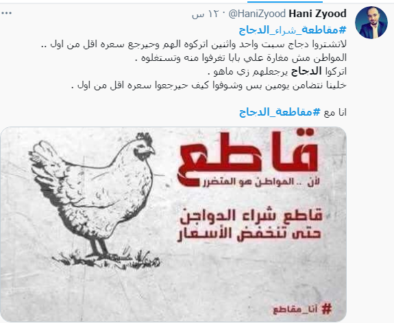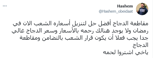 أحداث اليوم - تسبب الارتفاع الكبير في أسعار الدواجن منذ بداية شهر رمضان المبارك إلى اطلاق حملات عبر مواقع التواصل الاجتماعي تطالب بمقاطعة شراء مادة الدجاج .