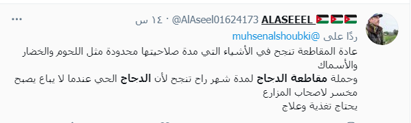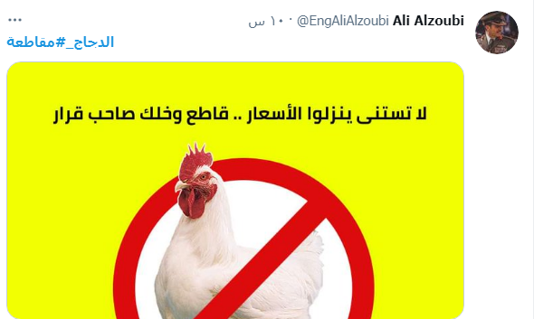 وطالب المواطنون عبر مواقع التواصل الاجتماعي لمقاطعة الدجاج اعتبارا من السبت، وذلك احتجاجاً على ارتفاع الأسعار غير المبرر.