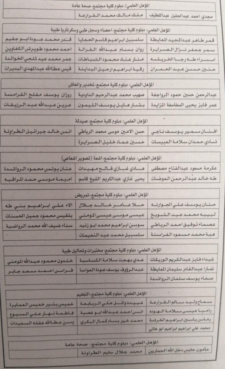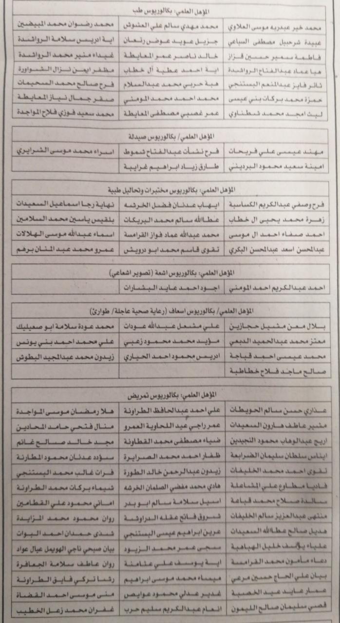 أحداث اليوم - أعلنت وزارة الصحة بالتعاون مع ديوان الخدمة المدنية اليوم الأحد، عن أسماء عدد من المرشحين للتعيين الفوري.