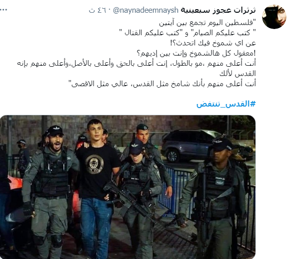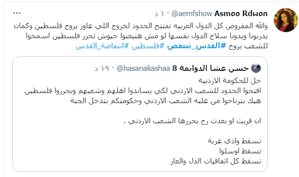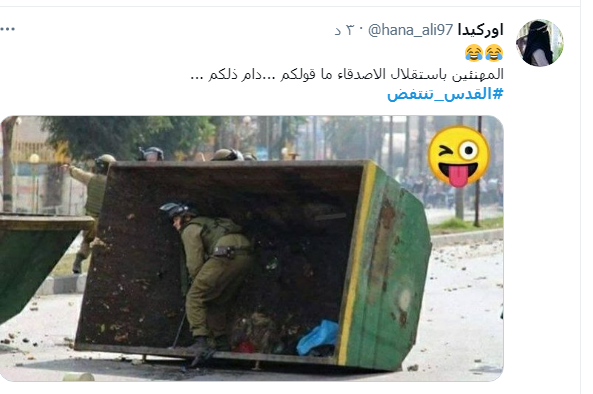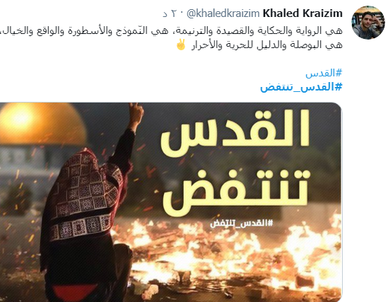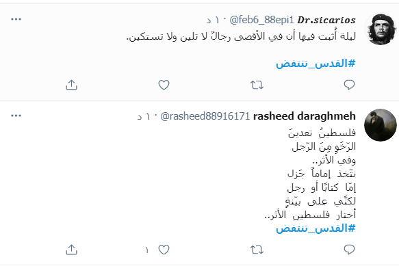 وتصدر وسم (#القدس_تنتفض) قائمة الوسوم الاعلى تداولا (ترند) في عدد من الدول العربية وعبر النشطاء من خلاله عن دعمهم الكامل للقضية الفلسطينية.