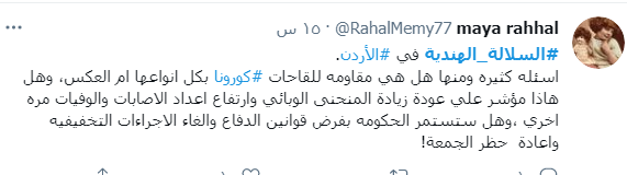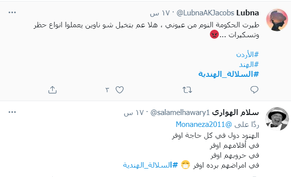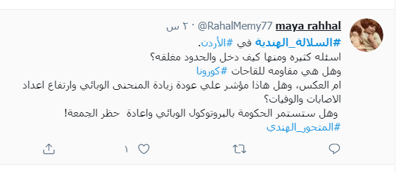 ودشن النشطاء وسم #السلالة_الهندية عبر موقع التغريدات المصغر" تويتر" متسائلين من خلاله عن كيفية وصول هذا المتحور إلى الأردن.