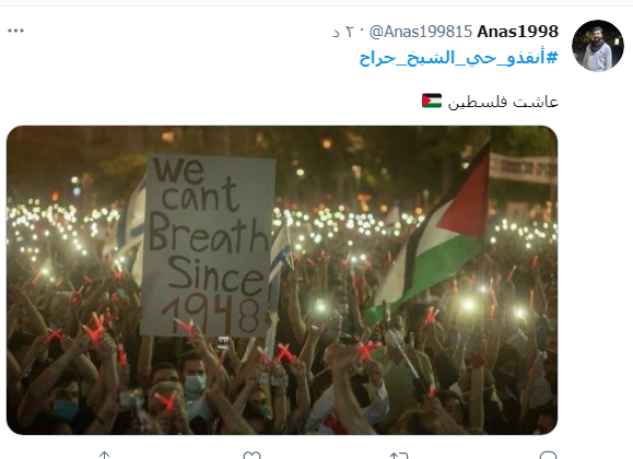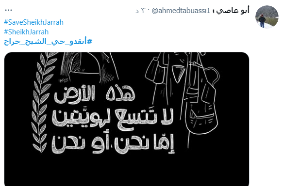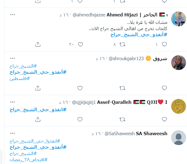 وعبر النشطاء من خلال الوسم عن تضامنهم مع أحداث حي الشيخ جراح والبطولات التي يسطرها الفلسطينيون هناك.