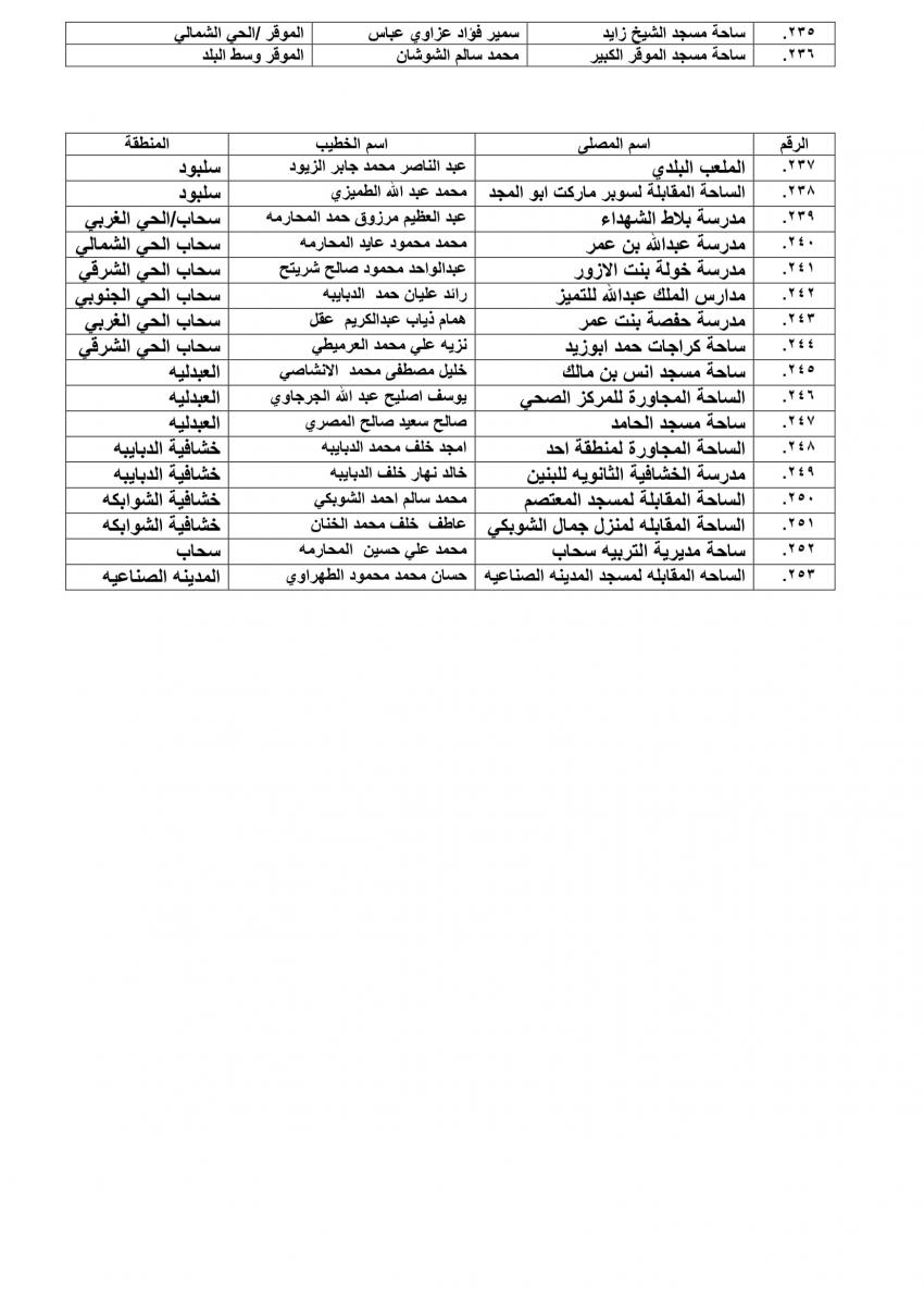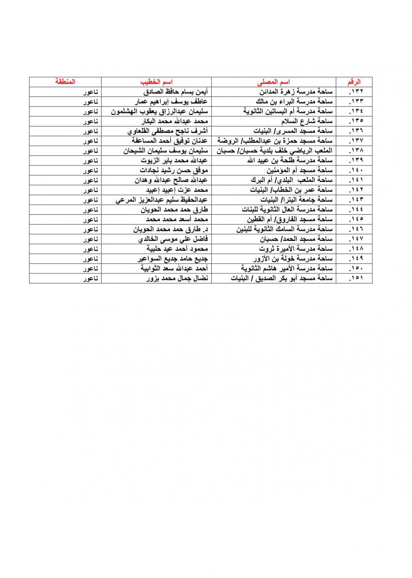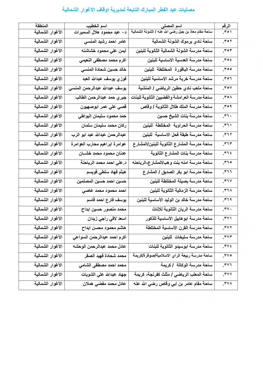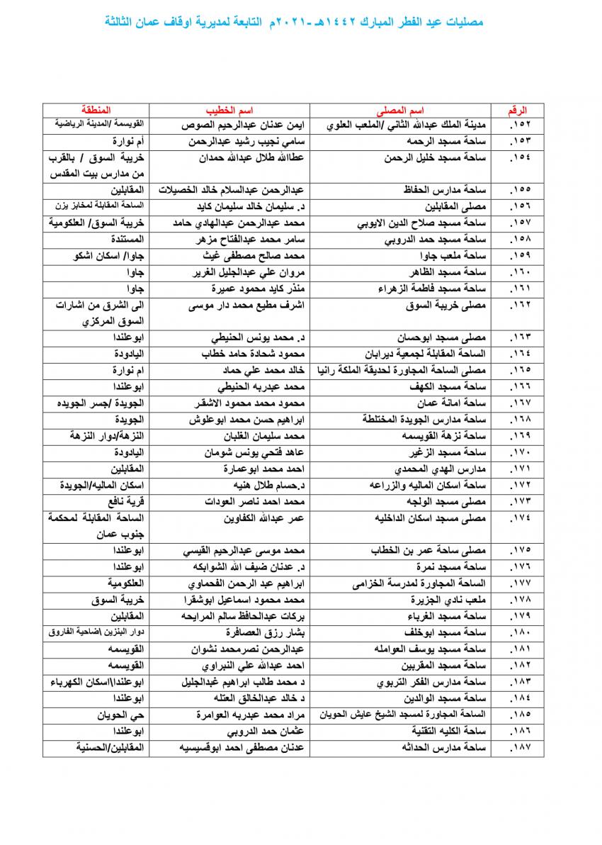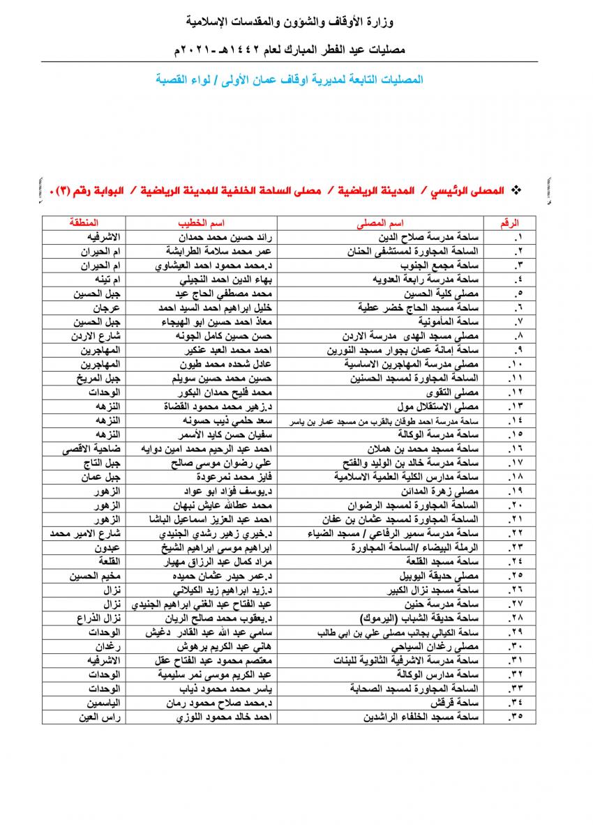 وأشار الحياري إلى أن الوزارة أعلنت على موقعها الإلكتروني وحساباتها على شبكات التواصل الاجتماعي أماكن مصليات العيد وأسماء الخطباء في جميع مناطق المملكة.