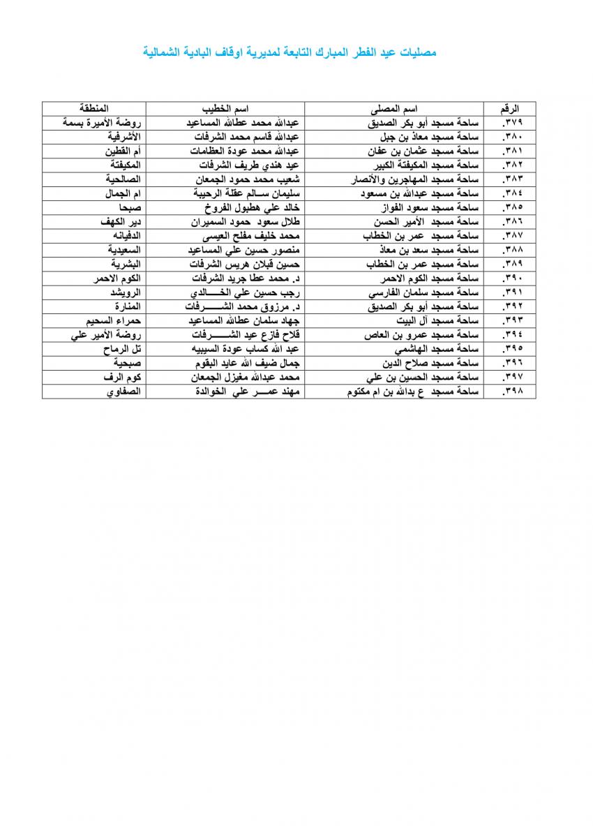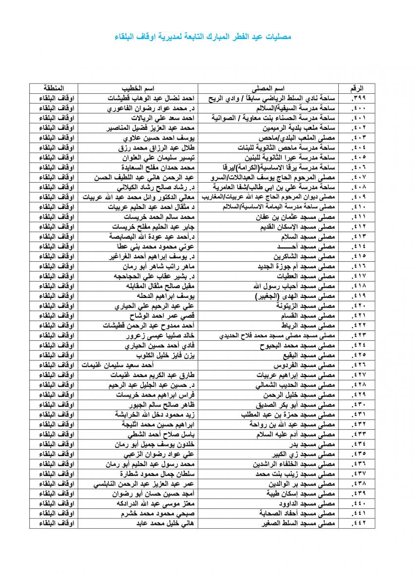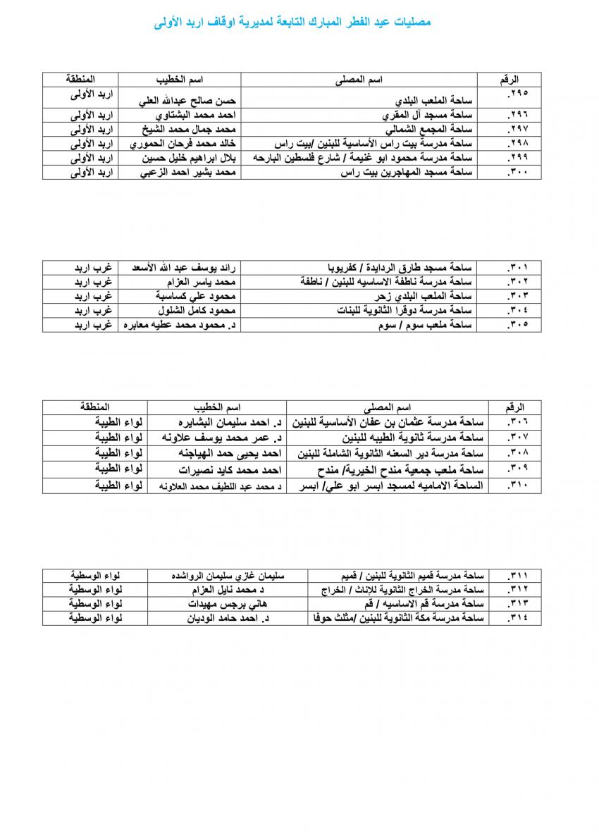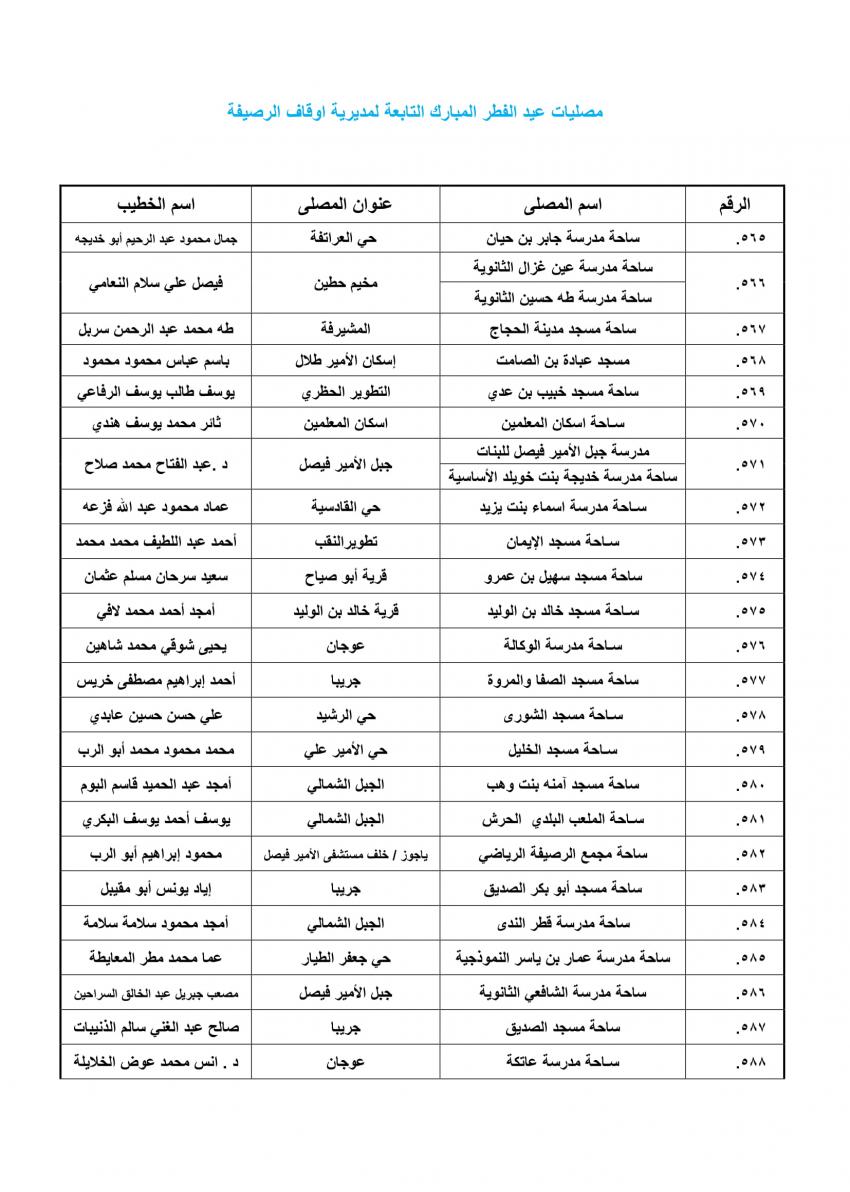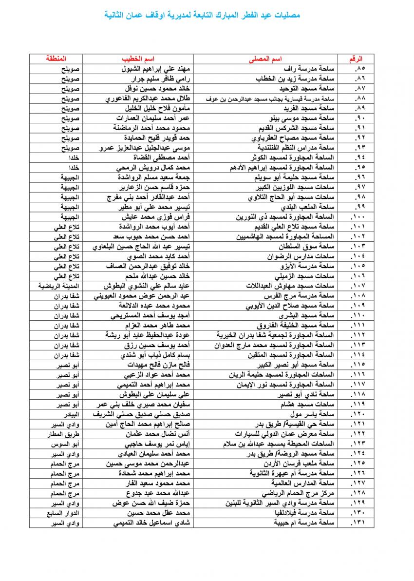 وأشار الحياري إلى أن الوزارة أعلنت على موقعها الإلكتروني وحساباتها على شبكات التواصل الاجتماعي أماكن مصليات العيد وأسماء الخطباء في جميع مناطق المملكة.
