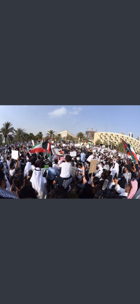 أحداث اليوم - خرج المئات من المتظاهرين في الكويت بوقفة تضامنية مع الشعب الفلسطيني في ساحة الإرادة قرب مجلس الأمة على إثر دعوة وجهها ناشطون احتجاجاً على انتهاكات دولة الاحتلال الإسرائيلي ضد الفلسطينيين في القدس المحتلة وقطاع غزة.