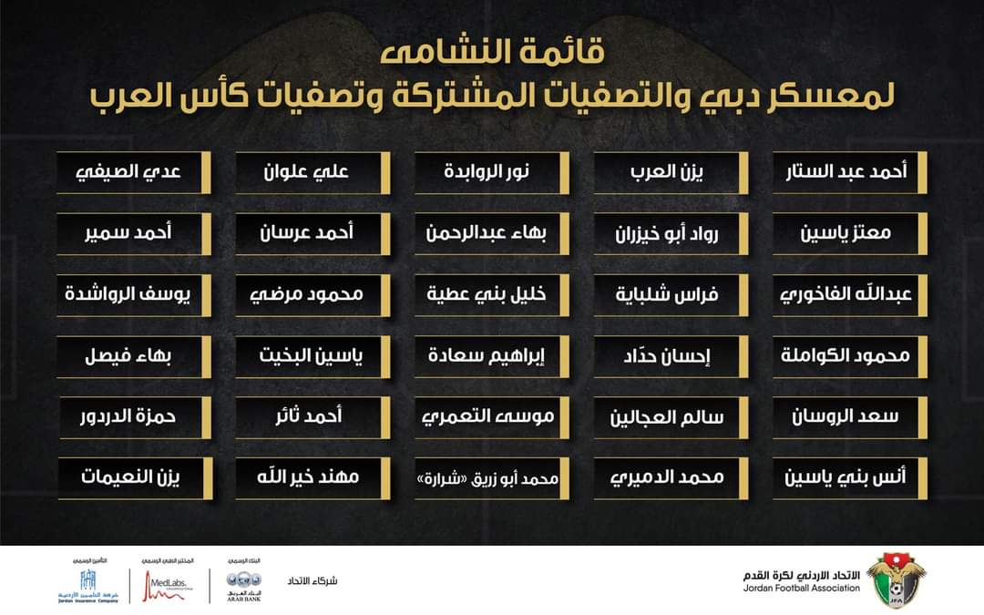 وأكد مدير المنتخب أسامة طلال، أن وفد النشامى في دبي، سيضم (25) لاعباً، بانتظار التحاق لاعبي الفيصلي والسلط بعد انتهاء مشاركتهم بكأس الاتحاد الآسيوي 27 الجاري.