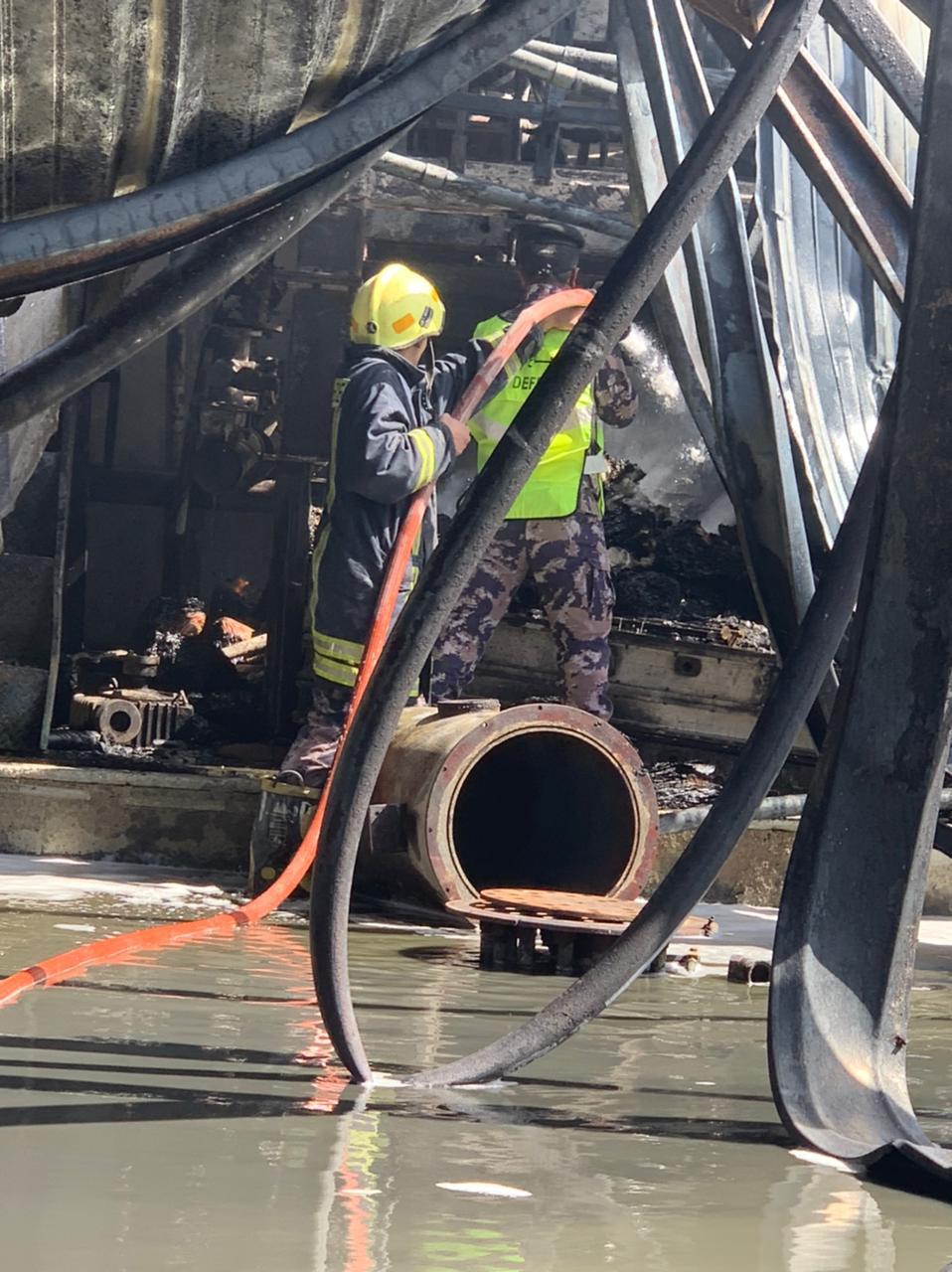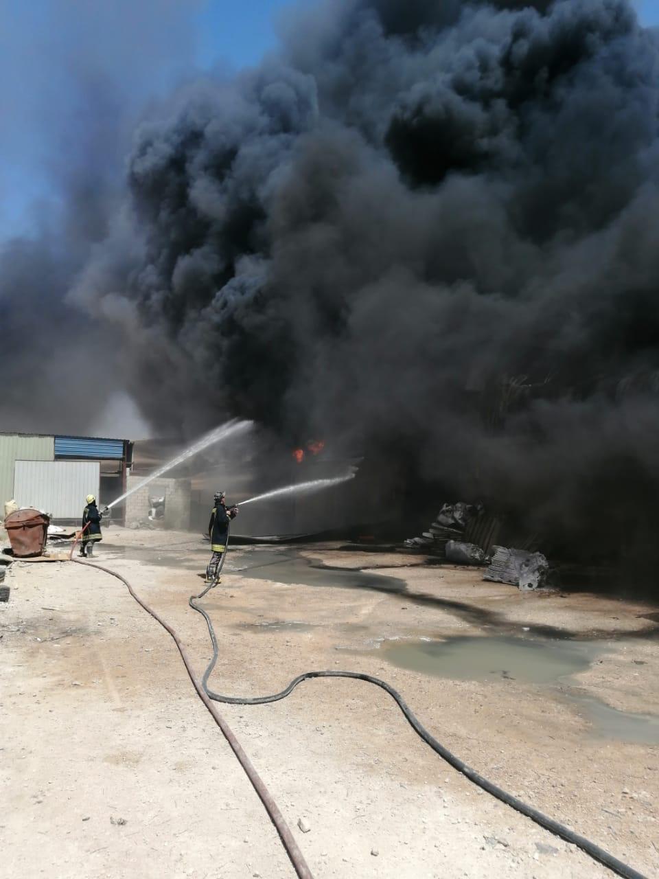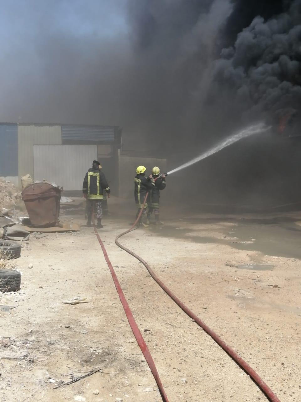 الدفاع المدني يخمد حريق مصنع بعمان - صور