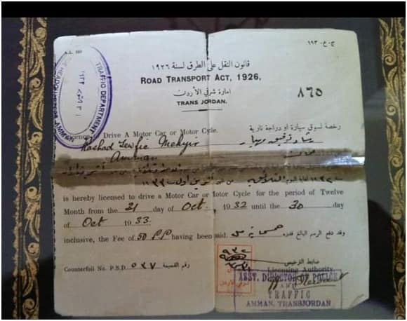 واهتمت الدولة الأردنية بتنظيم المرور، وصدر أول نظام ينظم الحصول على رخص القيادة للمواطنين وتم نشره في الجريدة الرسمية عام ١٩٢٣م، قراراً مصادقا عليه من المغفور له جلالة الملك المؤسس عبدالله الأول، رحمه الله.