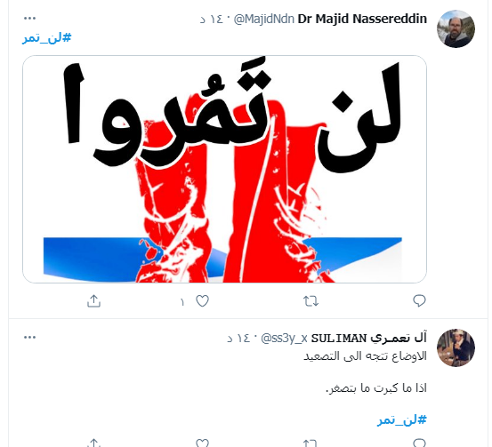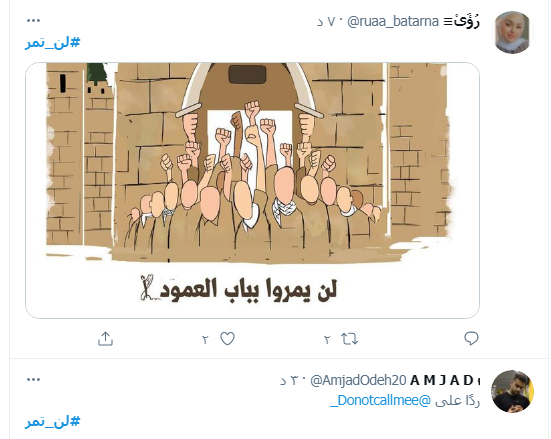 تصدر وسم #لن_تمر صفحات مواقع التواصل الاجتماعي وبالأخص موقع تويتر في الأردن.