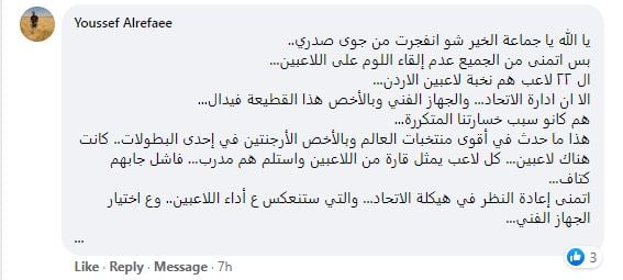 أحداث اليوم - بعد خسارة المنتخب الوطني لكرة القدم أمام المنتخب الأسترالي، ضمن منافسات التصفيات الآسيوية المشتركة المؤهلة للدور الحاسم لمونديال قطر 2022، طالب اردنيون باقالة البلجيكي فيتال بوركلمانز المدير الفني للمنتخب الأردني.