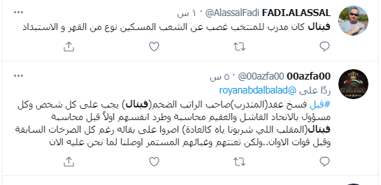 وطالب أردنيون عبر مواقع التواصل الاجتماعي باقالة فيتال فورا.