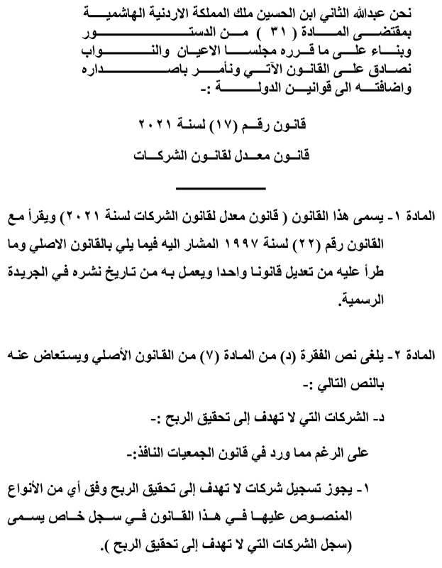 أحداث اليوم - نشرت الحكومة في الجريدة الرسمية، الأربعاء، قانــون معـــدل لقانــون الشركـــات.وشملت التعديلات تعليمات جديدة تخص الشركات التي لا تهدف لتحقيق الأرباح.وجاءت التعديلات على النحو التالي: