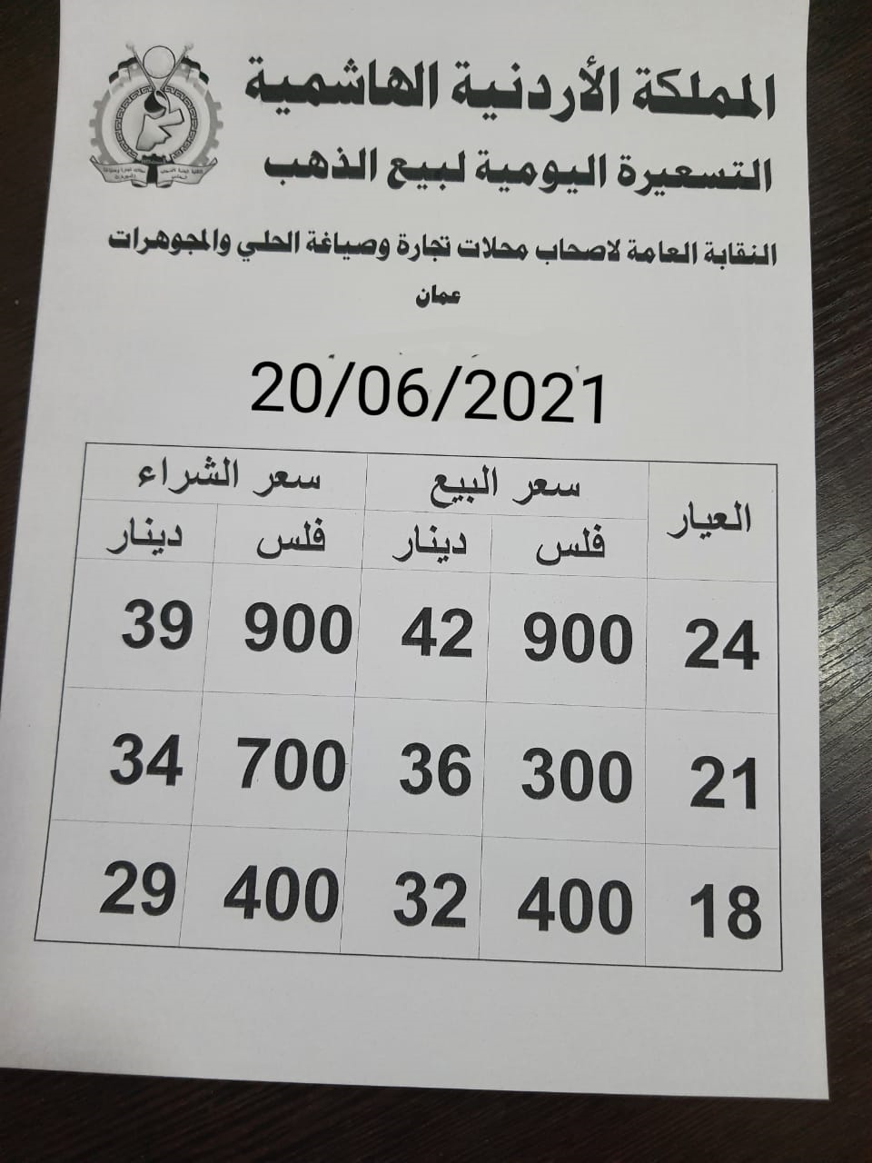 أحداث اليوم - أعلنت النقابة العامة لأصحاب محلات تجارة وصياغة الحلي والمجوهرات أسعار الذهب ليوم الأحد 20/6/2021.وتاليا جدول الأسعار: