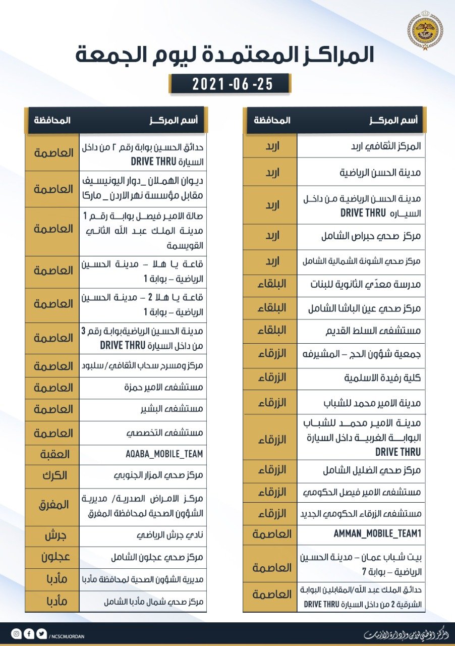 مراكز التطعيم العاملة اليوم الجمعة - أسماء