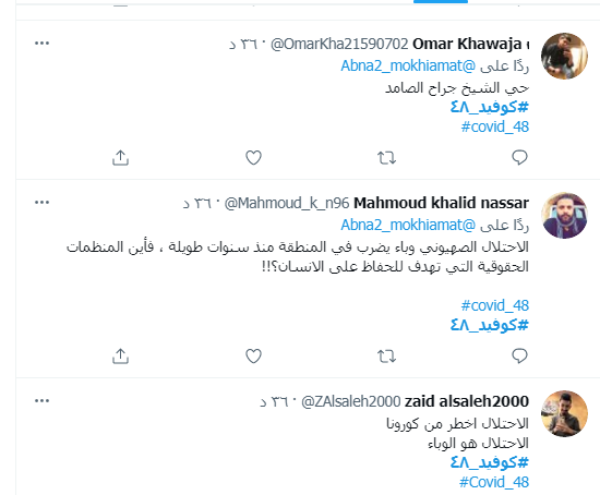 واشاروا الى الاحتلال الصهيوني وباء يضرب في المنطقة منذ سنوات طويلة ، متسائلين عن المنظمات الحقوقية التي تهدف للحفاظ على الانسان عن هذا الوباء الخطير الذي فتك و نكل بالكثير من البشر ؟!!