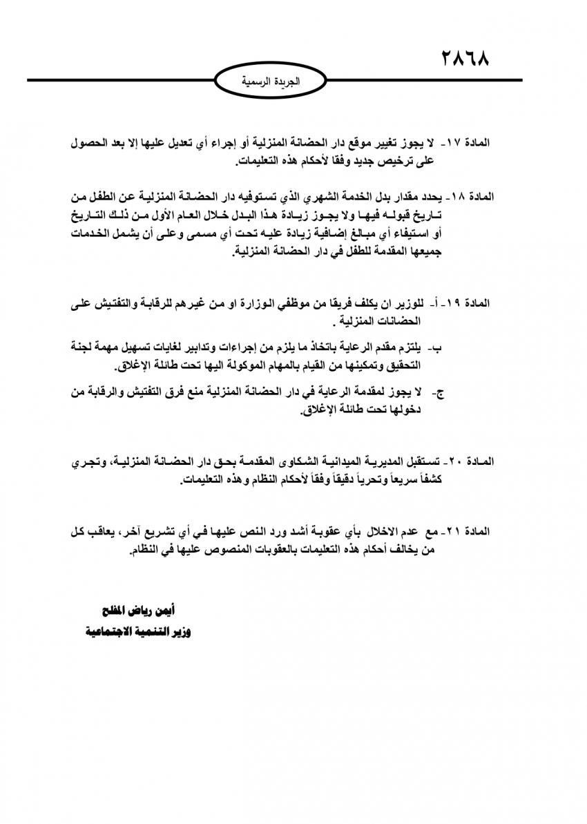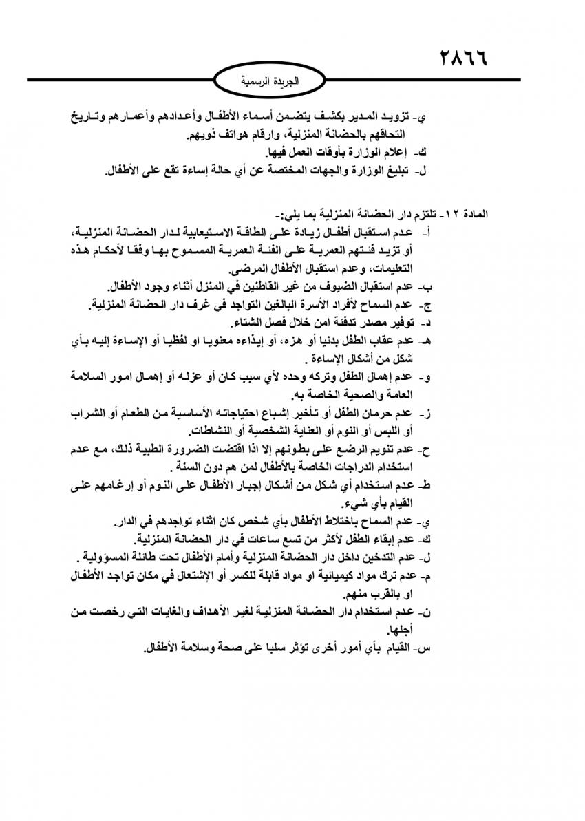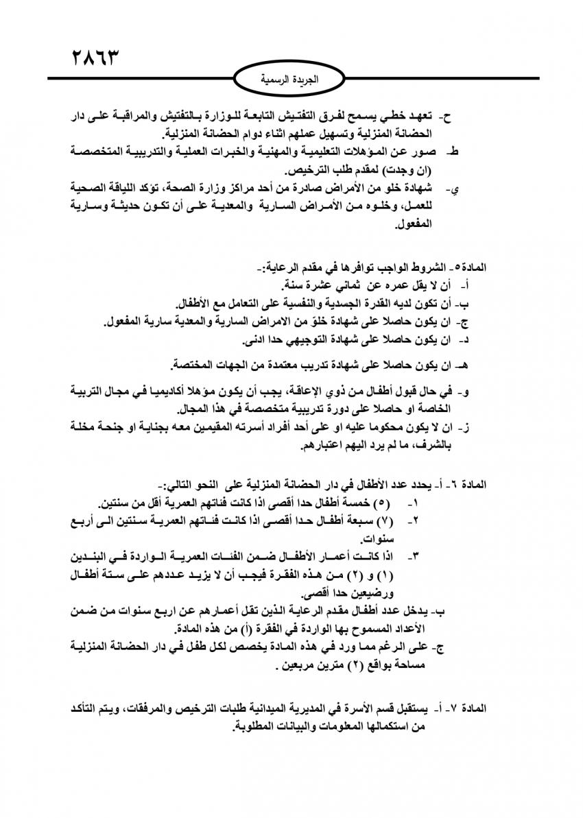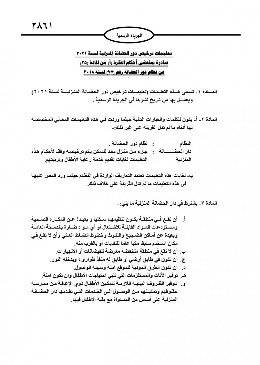 أحداث اليوم - نشر في عدد جديد للجريدة الرسمية، تعليمات خاصة بترخيص دور الحضانة المنزلية لسنة 2021، وسط شروط متعددة وتحديد لعدد الأطفال داخل هذا النوع من الحضانات.وتالياً نص التعليمات: