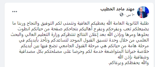 وجه مدير وحدة تنسيق القبول الموحد والناطق الإعلامي لوزارة التعليم العالي والبحث العلمي مهند الخطيب رسالة إلى طلبة الثانوية العامة “التوجيهي” بانتظارهم بعد إعلان النتائج.