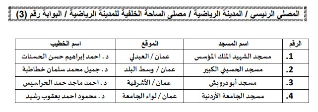 أحداث اليوم - أعلنت وزارة الأوقاف والشؤون والمقدسات الإسلامية، الأحد، مواقع وأسماء المساجد الرئيسية الكبرى في عمّان لأداء صلاة عيد الأضحى.