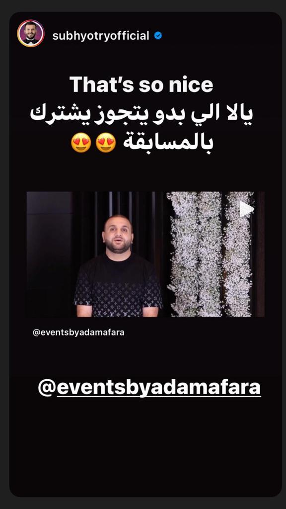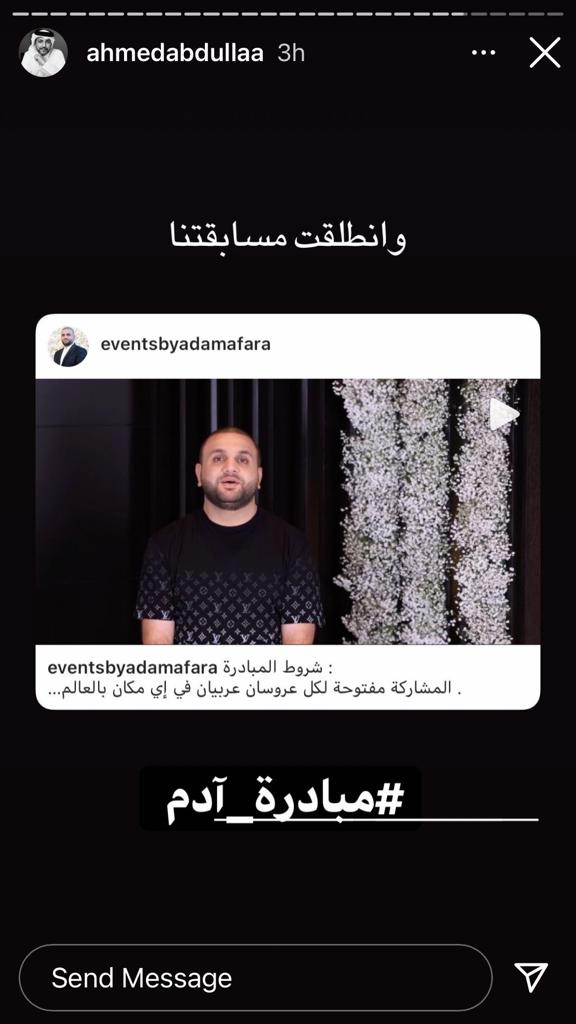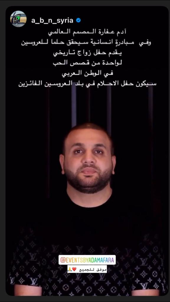 وفيها تحدث آدم عن إنجازاته ومشاريعه الفنية والقى الضوء أيضا على مبادرته الفنية بطرحه تقديم حفل زفاف يصممه وينفذه كهدية منه لمواطن عربي بدون مقابل مساهمة إنسانية منه بتخفيف الأعباء عن راغبي الزواج الذين لايستطيعون تحمل تكاليف حفلة الزفاف نظرا للظروف الصعبة التي تجتاح العالم عامة والوطن العربي بشكل خاص.