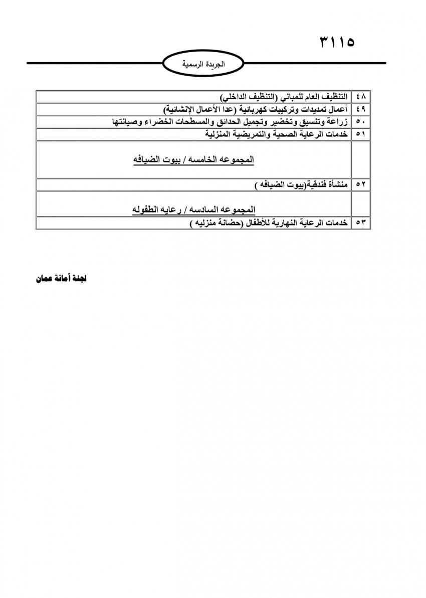أحداث اليوم - صدر في عدد الجريدة الرسمية الأحد، التعليمات المعدلة لتعليمات ترخيص ممارسة المهن من داخل المنزل لسنة 2021، والصادرة عن أمانة عمان الكبرى.وعدل جدول المهن المسموح بممارستها من المنزل.وتالياً الجدول: