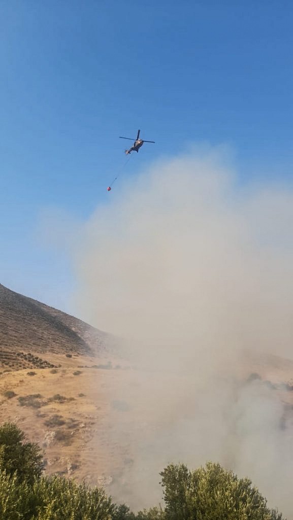 طائرات سلاح الجو تشارك بإخماد حريق في سد وادي العرب - صور