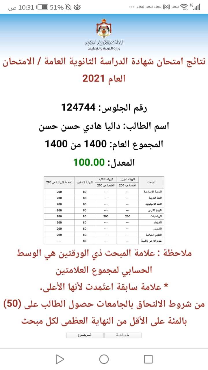 ورد وزير التربية محمد ابو قديس على سؤال لـ"أحداث اليوم" بعدم وجود اسمها ضمن اوائل المملكة بأن الأوائل فقط من تقدموا للثانوية العامة للمرة الأولى ولا يشمل المعيدين.